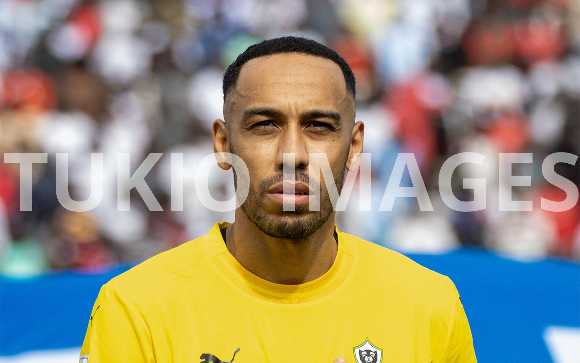 NAIROBI, KENYA – February 23: Gabon captain Pierre-Emerick Aubameyang ONM stands solemnly for the national anthem ahead of their 2026 FIFA World Cup Qualifier match against Kenya at Nyayo National Stadium on February 23, 2025. (Photo: Samwel Ogor/SportPicha/Tukio Images)