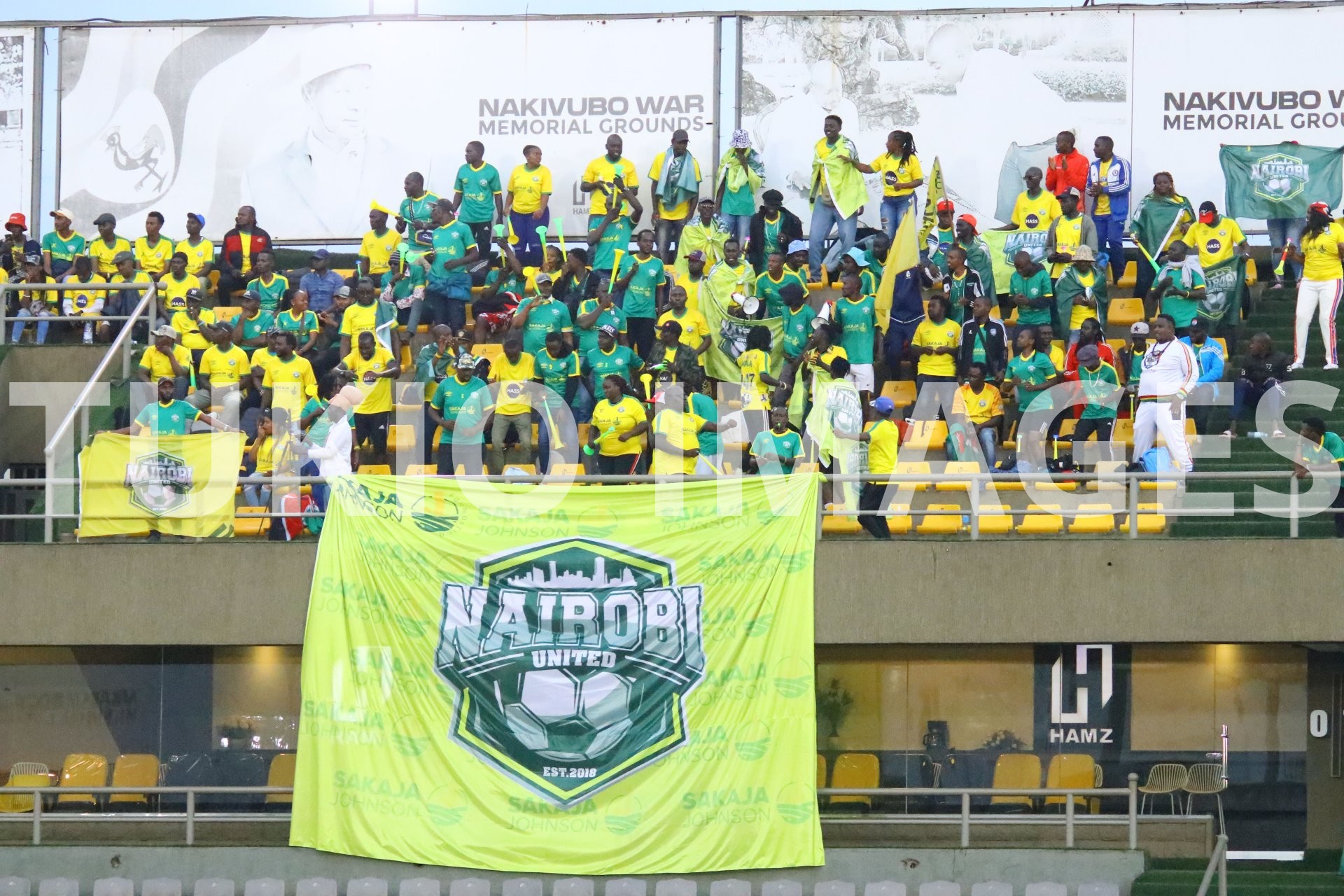 KAMPALA, UGANDA - SEPTEMBER 20: Kenya's Nairobi United fans cheer on their club during their CAF Confederation Cup first preliminary round against Uganda's NEC FC at the Hamz Stadium, Nakivubo on September 20, 2025 in Kampala, Uganda.  (Samwel Ogor/Tukio Images)